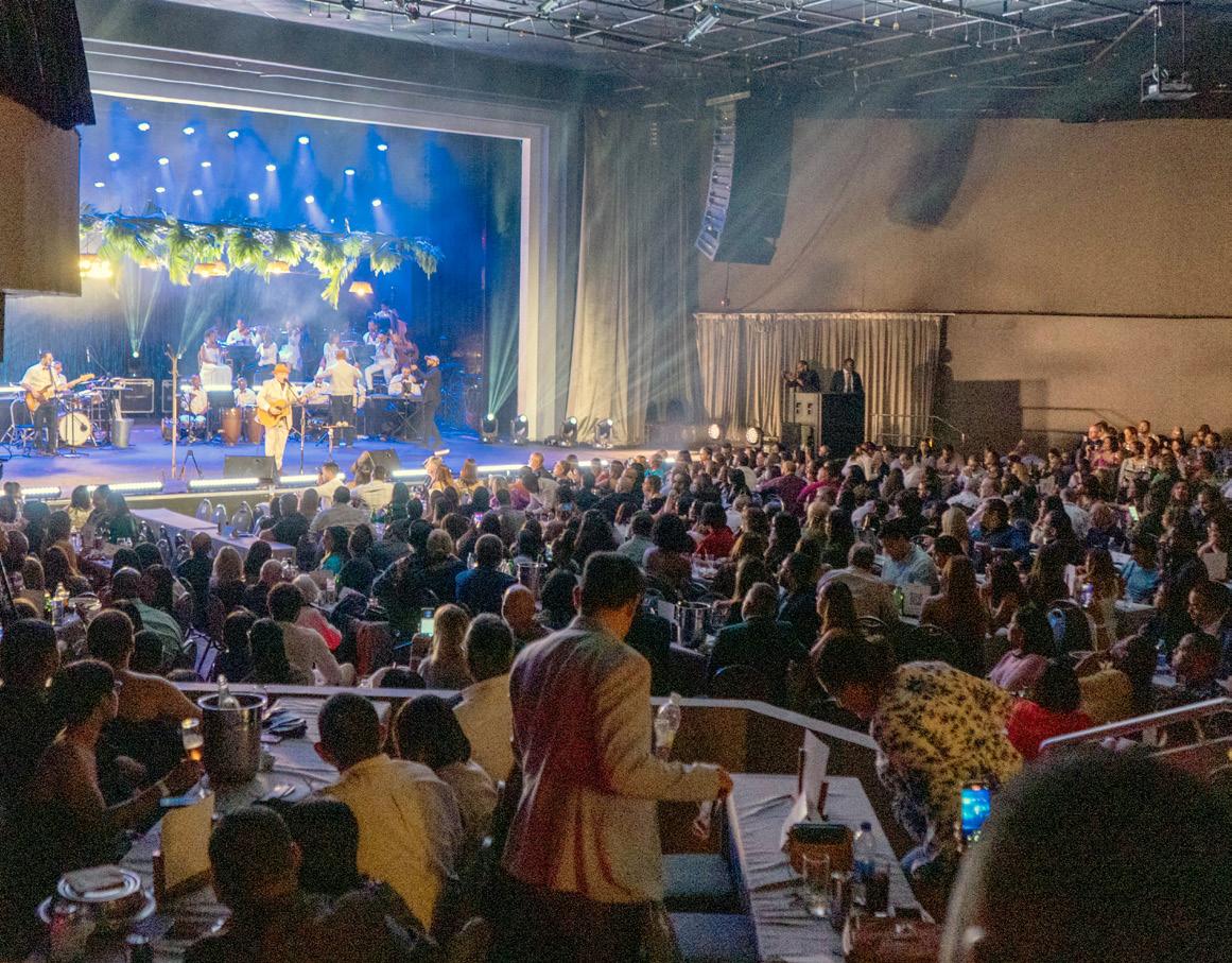 Más que un concierto, este fue un espectáculo en todo su es plendor, que inició con la expe riencia de usar sombreros, gui tarras y lentes a «lo Pavel» para fotografiarse con una imagen suya a tamaño natural. Entrar al salón Fiesta y encontrarse con un sugerente escenario que en trelazaba una noche de muchas estrellas entre luces y palmeras.