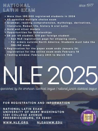 We promoted Latin League, a virtual year-long competition that fosters teamwork while challenging students' Latin skills Middle and High School Teams have been competing regionally since October with a national final upcoming