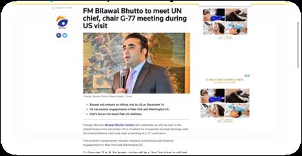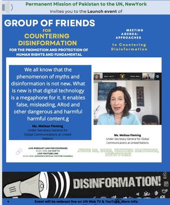 Foriegn Minister Bilawal Bhutto Zardari, Ambassador Munir Akram, UnderSecretary-General for Global Communications Ms. Melissa Fleming, Deputy High Commissioner for Human Rights Ms. Nada Al-Nashif, among many others, attended Pakistan's first meeting of Group of Friends on Countering Disinformation. The meeting was a follow up to the resolution 76/227.
