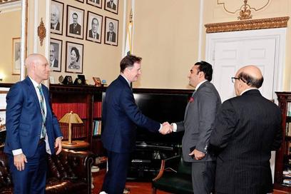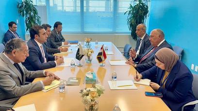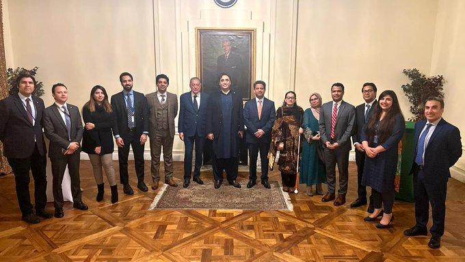 Ambassador Munir Akram and Counselor Imran Khan of the Permanent Mission of Pakistan to the United Nations in New York, with Foreign Minister Bilawal Bhutto Zardari and honorable personnel of the Pakistan Embassy in Egypt.