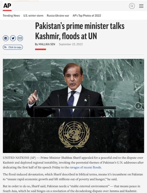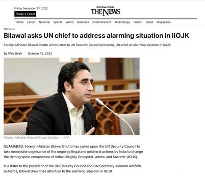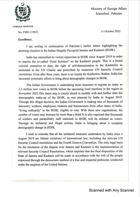 At the UN Pakistan slums India's attempt to portray Kashmiris' self-determination fight as terrorism August, 2022