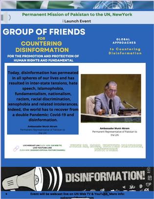The Group of Friends is a community of countries and international organizations that promotes the UNAOC's objectives at global, regional & local levels. On 22nd June 2022, Pakistan's Foreign Minister Bilawal Bhutto Zardari and Ambassador Munir Akram led the first meeting of the organization on Countering Disinformation.