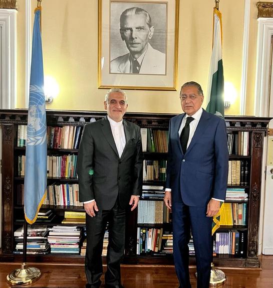 Courtesy call on Permanent Representative of Pakistan to the UN Ambassador Munir Akram by H E Amir Iravani, PR of Iran