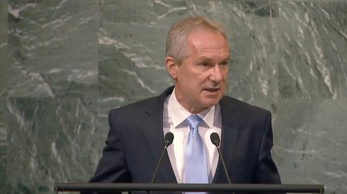 President General Assembly H E CSABA KŐRÖSI speaking at the adoption of resolution