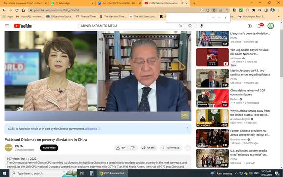 Ambassador Munir Akram Permanent Representative of Pakistan to the UN, chairing G77 Ambassadorial-level briefing by Center for Carbon Management in Energy on Carbon Capture Utilization and Storage: The Essential Enabler for an Equitable Energy Future AUGUST 2022
