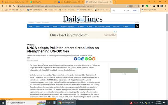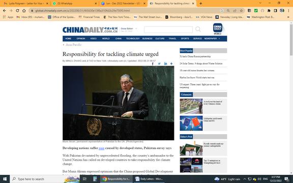 PERMANENTMISSIONOFPAKISTANTOTHEUNITEDNATIONSNEWYORK Chairmanship of the Group 77 & China Chairmanship of the OIC Group in New York Security Council UNGA 77 COP 27 Right of Replies Kashmir Dispute Peacekeeping Call ons International Days In this Issue: 1. 2. 3. 4. 5. 6. 7. 8. 9. 10. AND MORE... JUNE TO DECEMBER 2022 "Enhancedsolidarityand cooperationtoaddressloss anddamageisnotcharity–it isclimatejustice." MunirAkram, Ambassador/Permanent RepresentativeofPakistanto theUnitedNations,NewYork NEWS LETTER