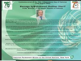The Permanent Mission of Pakistan wishes all a Happy 75th Independence Day. Prime Minister Shahbaz Sharif, Foreign Minister Bilawal Bhutto Zardari. Ambassador Munir Akram, and President Dr. Arif Alvi provide their remarks.