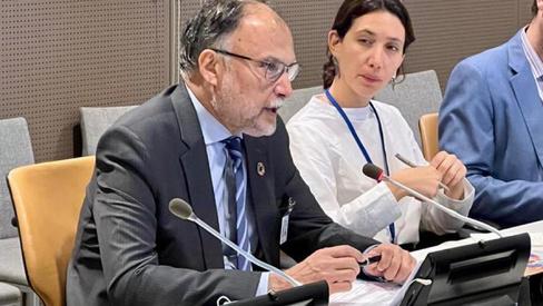 Ambassador Khalil Hashmi, Permanent Representative of Pakistan Mission in Geneva, providing his statements at OIC meeting