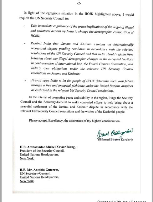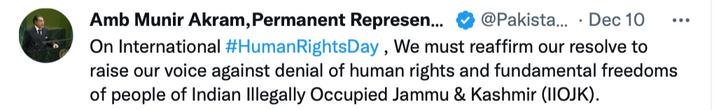"The world community must press India to halt HR abuses, reverse demographic changes and India’s illegal actions of 5th August 2019; enable Kashmiris to exercise their right to Self Determination through implementation of UNSC Resolutions."