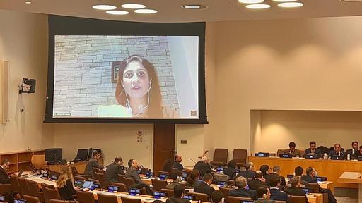 Ms. Saima Saleem, representative of the 3rd committee, providing her remarks on the World Summit for Social Development.