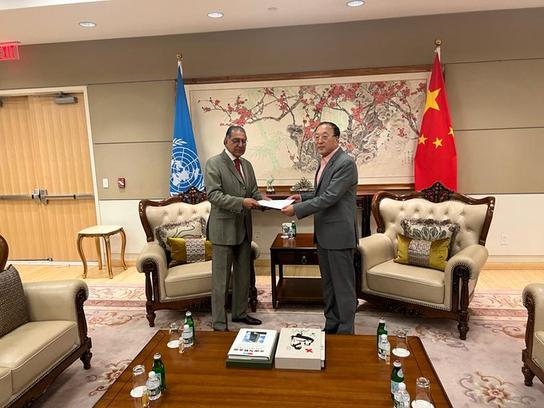 Ambassador Munir Akram delivered a letter from Foreign Minister Bilawal Bhutto Zardari to Ambassador Zhang Jun on the eve of 3 years since India's unilateral & illegal action in IIOJK.