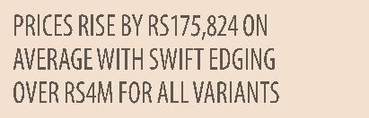 PRICES RISE BY RS175,824 ON AVERAGE WITH SWIFT EDGING OVER RS4M FOR ALL VARIANTS