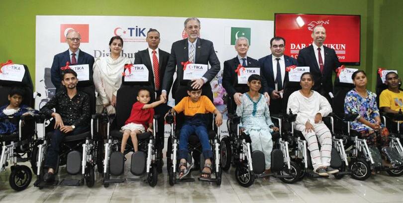 K A R A C H I: Turkish Cooperation and Coordination Agency (TİKA) handed over The handing-over ceremony of Motorized Electric Wheelchairs by Turkish Cooperation and Coor Motorized Wheelchairs to Darul Sukun to support the empowerment of differently-abled people The handing-over ceremony of the wheelchairs was held at Darul Sukun Head Office on Saturday 25th of May in the presence of Prof Dr Mehmet Paçacı Ambassador of Republic of Türkiye to Pakistan Sindh Health Minister Dr Azra Fazal Pechuho Consul General of Türkiye to Karachi Cemal Sangu, TİKA Karachi head Halil İbrahim Başaran and many other distinguished guests Speaking at the ceremony, Turkish Ambassador Paçacı said that Türkiye and Pakistan ties goes long back in the history even before establishment of Republic of Türkiye and Islamic Republic of Pakistan Pakistan showed up extending brotherly arm to earth quake effected Türkiye abs saved 28 lives, similarly, Türkiye sent 13 good will trains to Pakistan after flood in Pakistan Through Turkish Cooperation and Coordination Agency-TİKA we will continue to support Pakistan STAFF REPORT