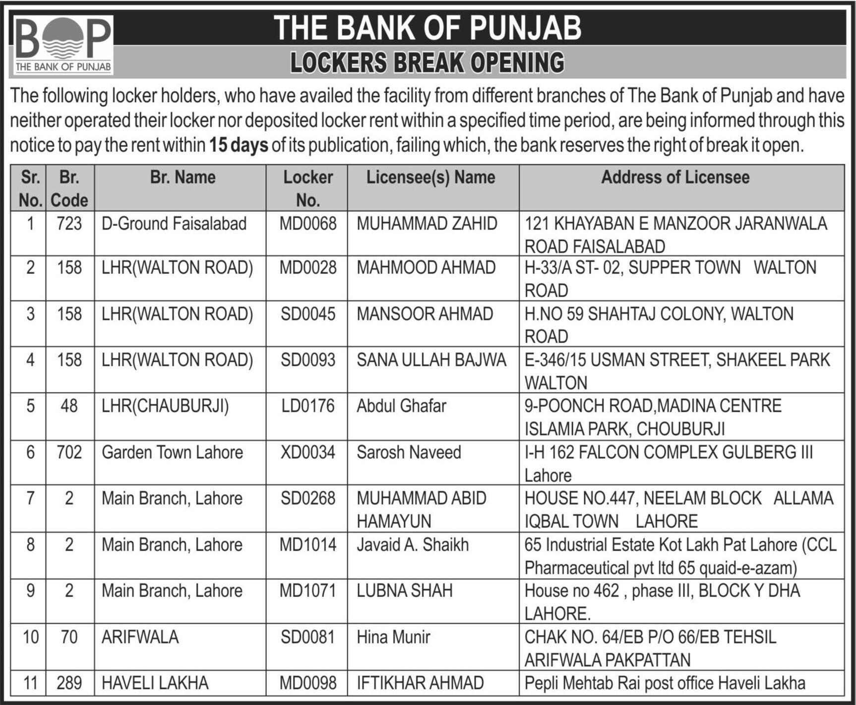 Attock, Jhelum, Narowal, Chiniot, Kasur, Khushab, Toba Tek Singh, Okara, Khanewal, Lodhran, Muzaffargarh, Hafizabad Jhang Pakpattan Rajanpur Sheikhupura and Vehari