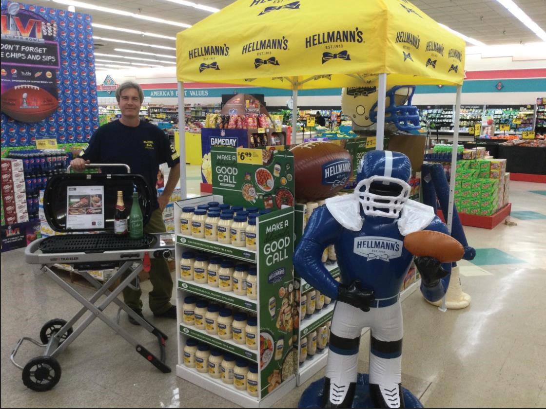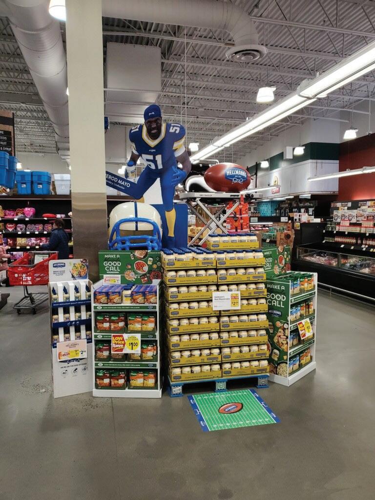 Unilever approached The Sourcing Group with a high-level goal: to create eye-catching in-store displays to promote the Hellmann’s brand during the Superbowl season. With no finalized vision at the start, Unilever sought creative direction and full execution support. The primary objective was to enhance brand visibility and consumer engagement across approximately 1,000 grocery stores nationwide.