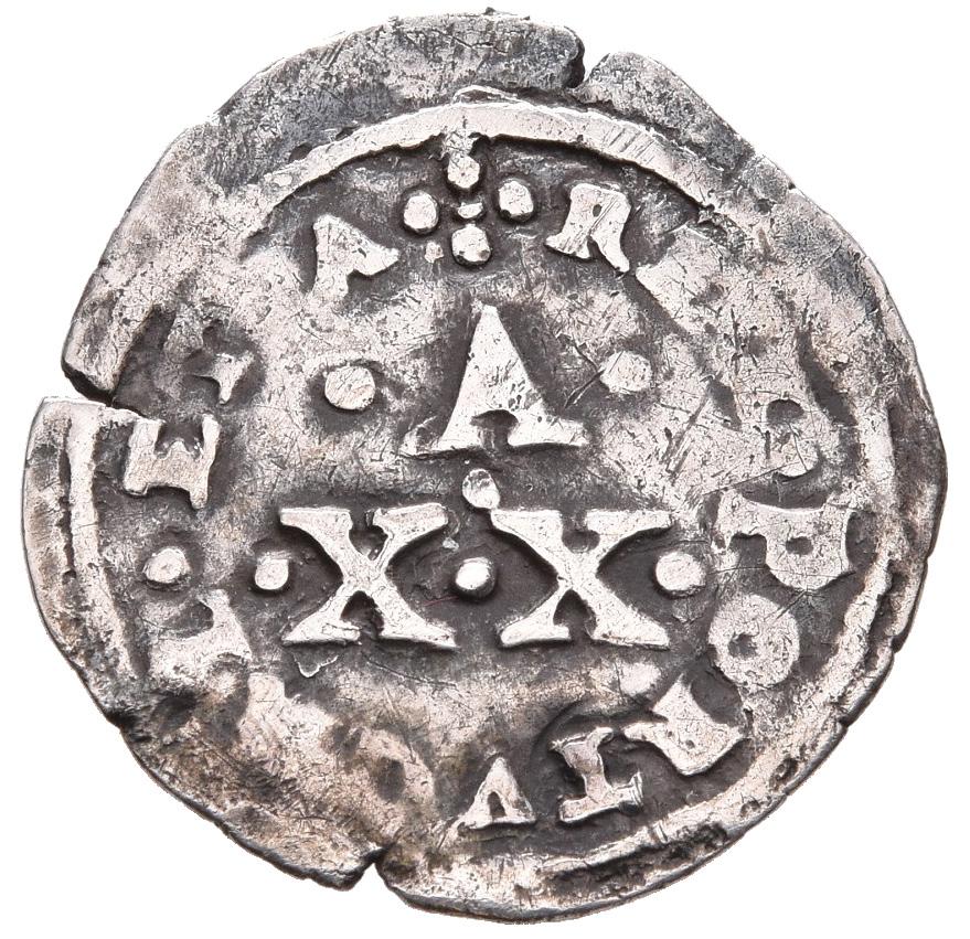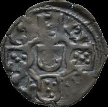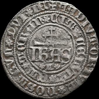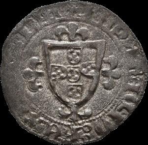 Dom João I, Real Branco, Lisboa (1415-1433), Bolhão Legenda anverso: + ADIVTORIVM * NOSTRVN * QV * F€€CIT * C€€LLVN * € Legenda reverso: + IHNS : D€I : GRA : R€X : PO :€T : A