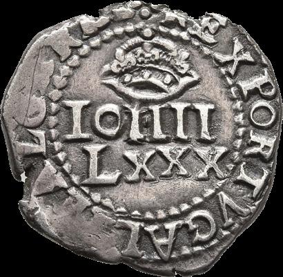 Legenda anverso: + AVXILIVM * M€(VN * ADOMINO * QVI * F€( : CIT * C€(LVN * €(T * T€(RAN * Legenda reverso: * F : D : G : R€(X : PORTVGALI€( : €( : ALGARB