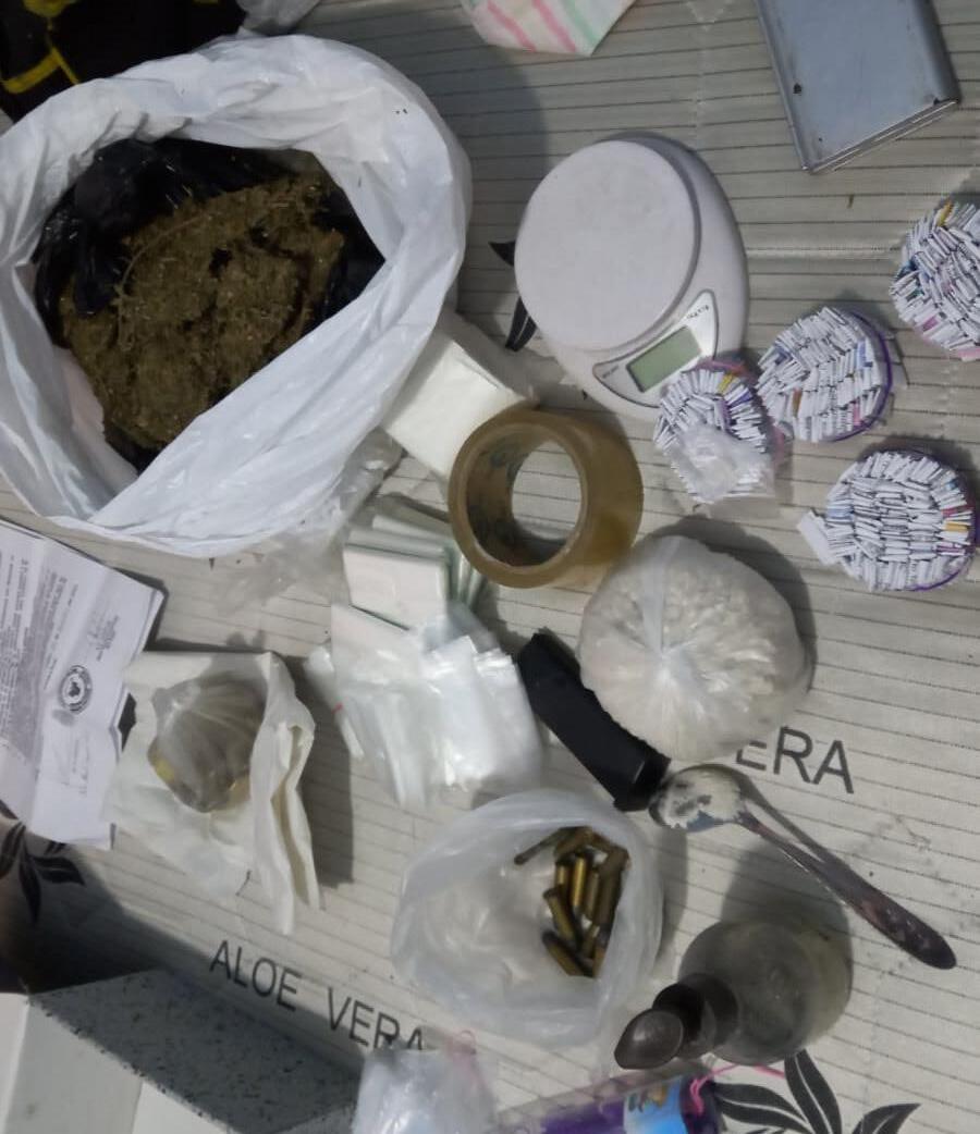Durante el registro domiciliario, se le halló una pistola Glock modelo 25, calibre 9mm corto con un proyectil en recámara, cacerinas, municiones y diversos tipos de drogas.