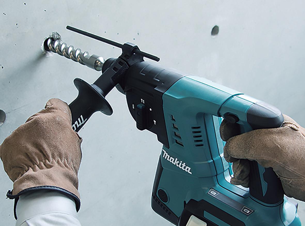 Mango de sujeción, mango de seguridad, adaptador para barrenas, adaptador para barrenas con inserción estriada, llave de portabrocas y tres llaves allen 5, 6 y 10 mm.