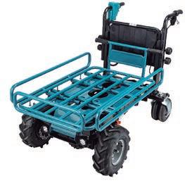 2 velocidades + Marcha atrás. Máximo ángulo de escalada: 12º Ruedas traseras regulables. Mecanismo antivuelco. Freno de mano. Hasta 130 kg. 44,8 kg