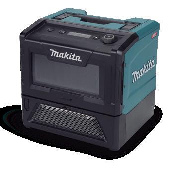 Nuevo microondas a batería XGT. Complemento perfecto para tus acampadas. Botón de inicio y dial de ajuste del tiempo de calentamiento.