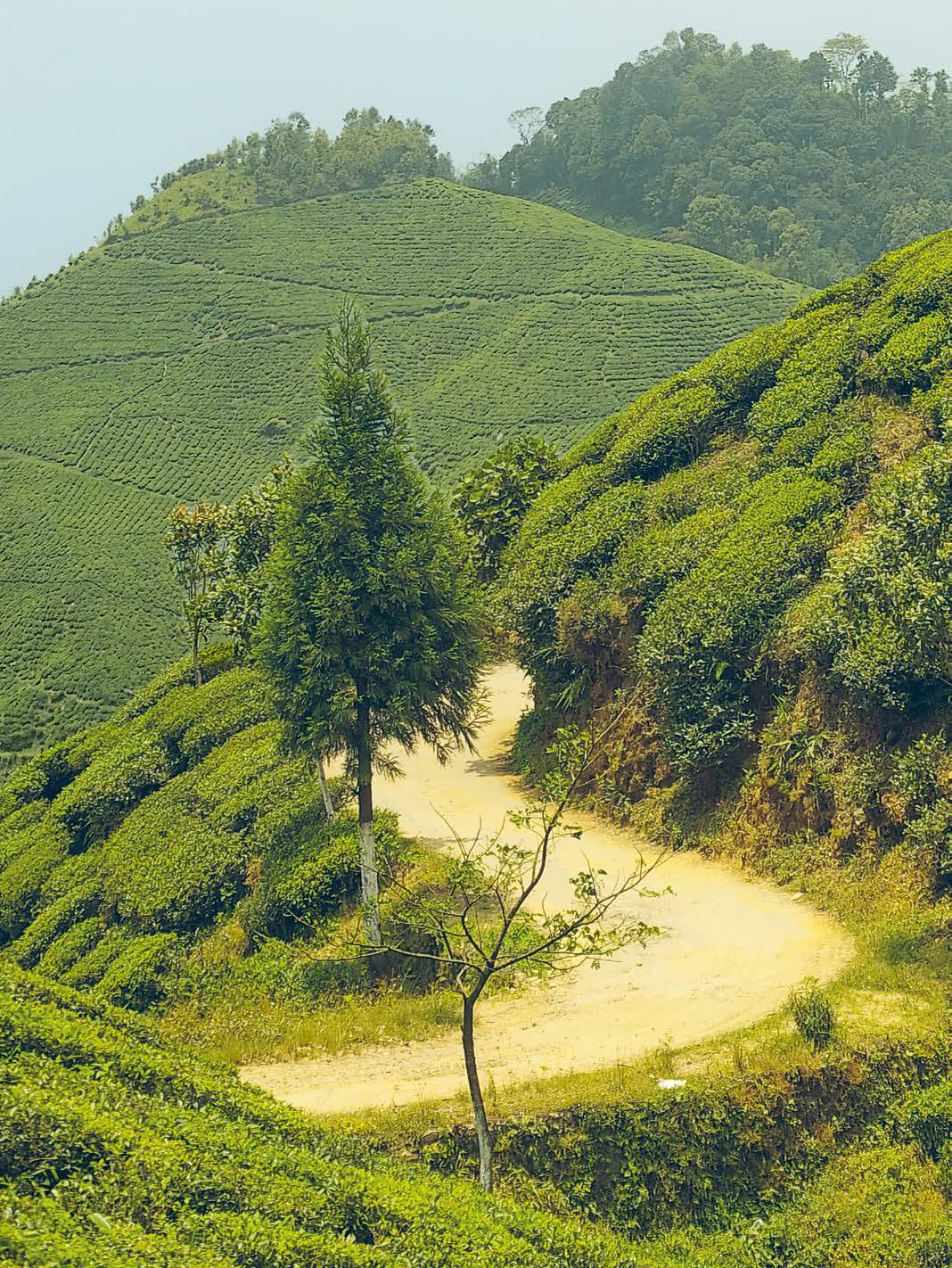 Darjeeling is François-Xavier Delmas’ favorite tea-growing region. Now in his sixties, he tells us he has given up counting the number of times he has visited these lands. Taking his role as guide very seriously, at the airport he explains the basic travel etiquette, from the subtilities of gestures and body language to local customs. We have barely landed in New Delhi before we jet off for Bagdogra, in northeast India and just south of Darjeeling. From the airport, there are tea plants everywhere, stretching as far as the eye can see. Their leaves will be used to make tea for tea bags, made using the CTC method (for “crush, tear, curl”).