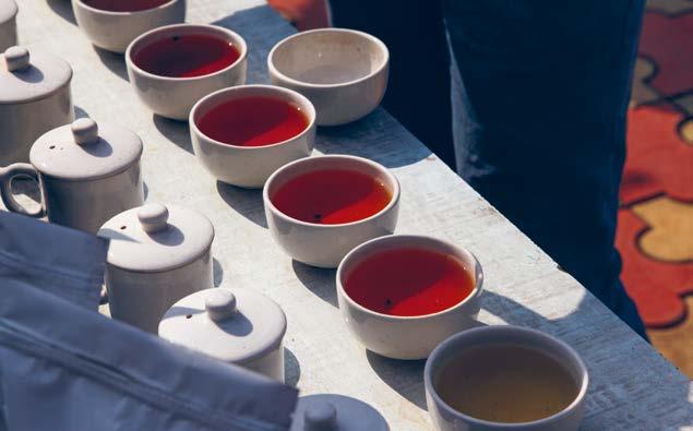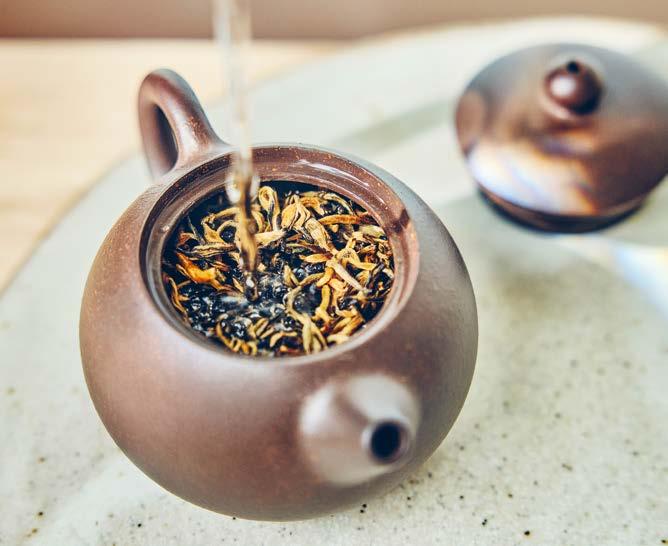 partly composed of tea buds, as well as the fact that black teas are natural stimulants. It can also be served with a splash of milk, making for a very British afternoon tea, paired with scones, fruitcake and finger sandwiches. What better way to discover the multicultural origins of this legendary tea region. •