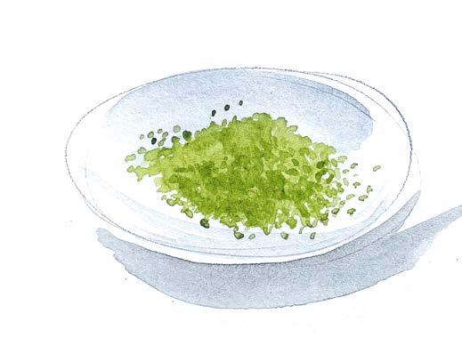 For savory dishes, matcha’s herbaceous notes of sorrel, watercress and spinach add depth to seafood recipes. It can be mixed with salt or added to a sauce to accompany fish, or can even be used to enhance mayonnaise.