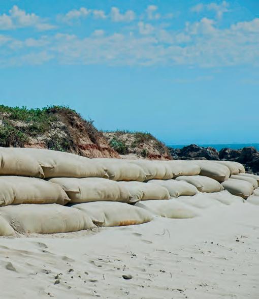 « La première expropriation climatique hexagonale s’est déroulée à Soulac-sur-Mer (Gironde). »01 Sacs de sable sur une plage empêchant l'érosion du sol à marée haute et aux jours de tempête. 02 Forêt de mangroves de krabi, Krabi, Thaïlande. 03 Site de plongée, archipel des