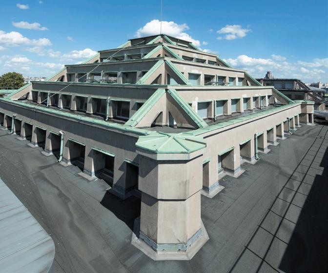 « C’est compliqué parce que la toiture est composée de nombreux éléments comme les pyramides et les lanterneaux, ces constructions assurant également l’éclairage naturel du bâtiment.