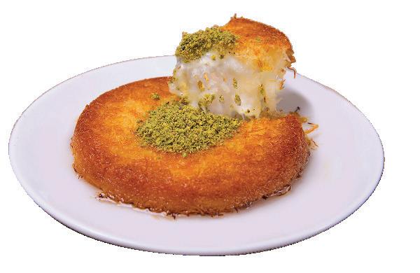 Knafeh is a popular dessert during Ramadan. It is made with spun pastry called kataifi, soaked in a sweet, sugar-based syrup called attar, and typically layered with cheese.