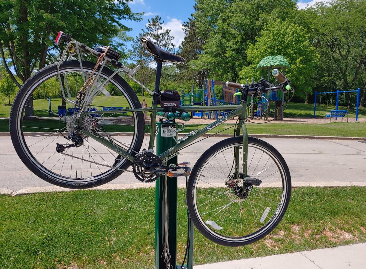 Palatine Park District and Bike Palatine Club have partnered to install four bike repair stations along the Palatine Trail to help you fix small problems on your ride. Look for them at Maple Park, Dutch Schultz Fitness & Recreation Area, Towne Square, and Harper College/Plum Grove Reservoir. Tools provided at each station include a bike stand, air pump, various sized wrenches, screwdrivers, and an Allen wrench set.