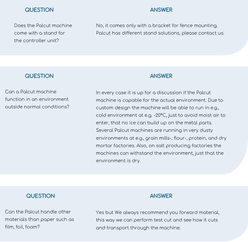 The Palcut machine can be equipped with different kind of add-ons to improve the general use or the everyday, depending on the use, size, customer requirements, paper thickness etc.
