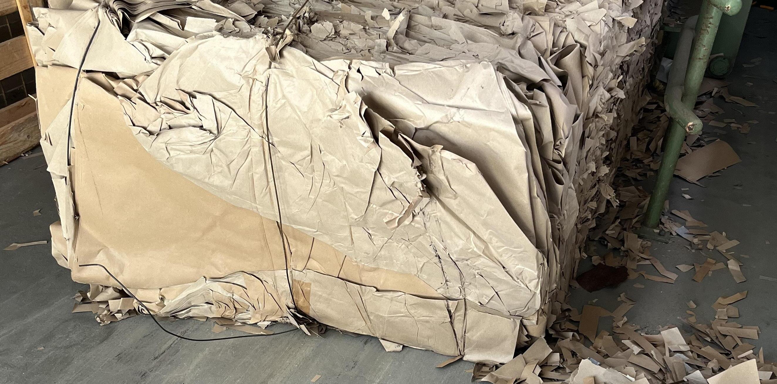 Paper waste for recycling: All excess paper is compressed and sent for recycling.