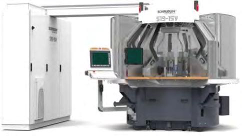 The S19-15V has 15 3-axis workstations, 12 of which are protected in the machining area and 3 others deal with the loading, unloading and control of parts. The machine is equipped with a Fanuc 30iB control system, spindle and drive motors from the same supplier, and a direct-drive C-axis for diamond chamfering operations on watch components. The S19-15V also features intelligent AI functionality. Fanuc Contour Control and a variety of spindles to enhance torque or rotational speed. The indexing time of the rotary table is only 1.5 seconds, guaranteed by a Hirt toothing. The programming of the machining stations is completely independent from one unit to another, thus facilitating its use. The S19-15V offers the capability to machine both metallic and non-metallic materials, with or without coolant, and also features an internally developed robotic and palletized integration. The machine configurations are highlymodular and adaptable to the various needs of investors, and can also evolve over time. Schaublin Machines SA uses all the advantages of current technology to make the productivity of transfer machines more flexible.