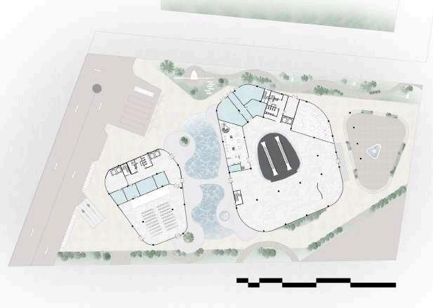 Afreestandingworkshop spacehal buried undergroundforeyecontact durnggrave andwater gardenactivtes