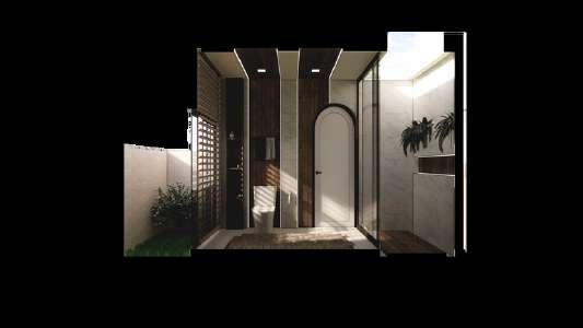 Thisareaaimstobea peaceful relaxingspotfor youreyes,echoingthe gardenoutsde Woodenwal detalsconnect tothesinkside,wth ightlnes hghightngthetoletarea