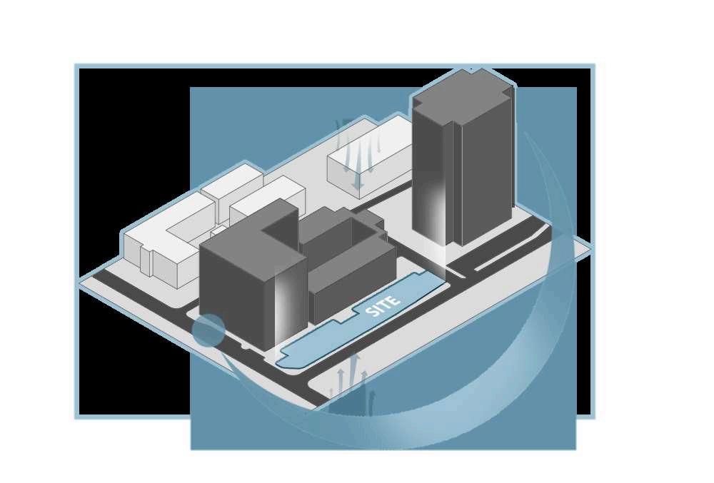 REDUCE THE CONNECTION TO A TRANSPARENT BR DGE FOR WIND FLOW AND TREE CUBES AROUND THE BUILD NG