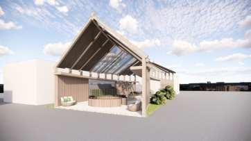concept: ศาลาทีมีหลังคาโครงสร้างคล้ายกัโครงกระูกใโนNสาร์