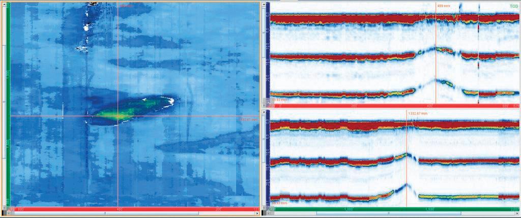 Figure 3. Sample mining processing tank inspection results highlighting precise defect detection (i.e. corrosion).