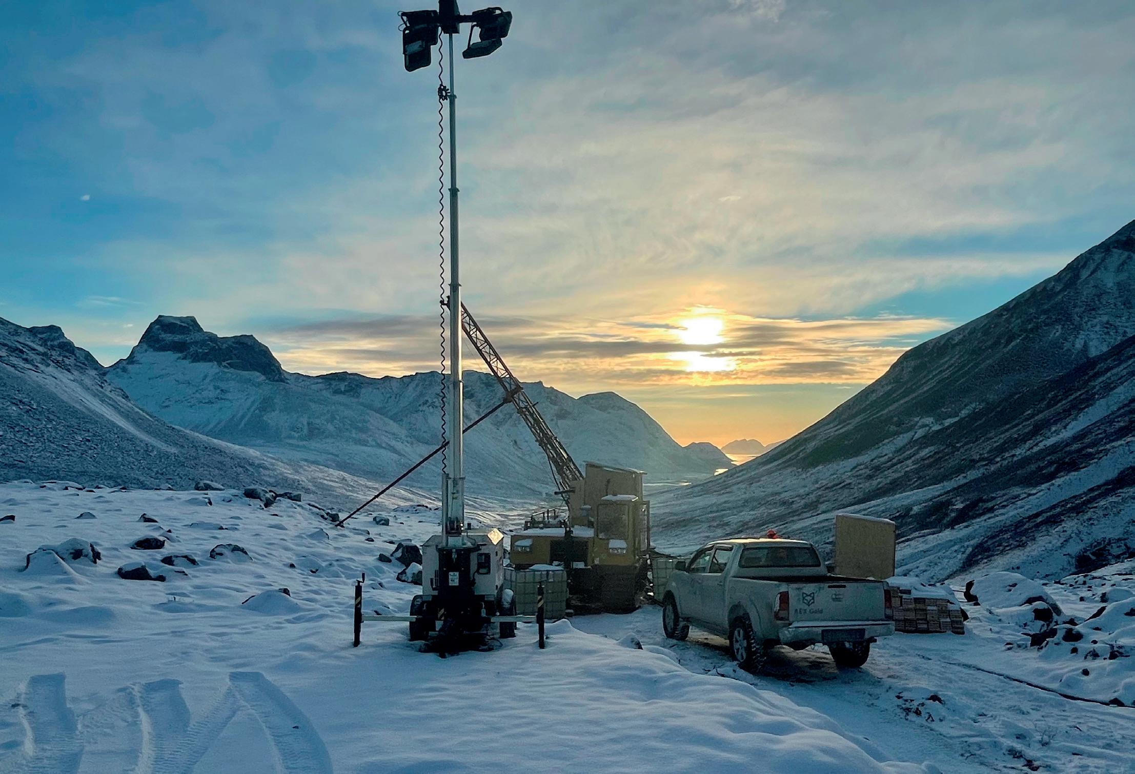 prevented international workers from accessing the site, leading to the temporary halt of operations for Amaroq and others. One strategy to overcome these challenges involves becoming self-sufficient in terms of accommodation and logistics, something Amaroq has been investing in since the setup of an all-weather 50-person camp, enabling the continuation of exploration and development through winter.