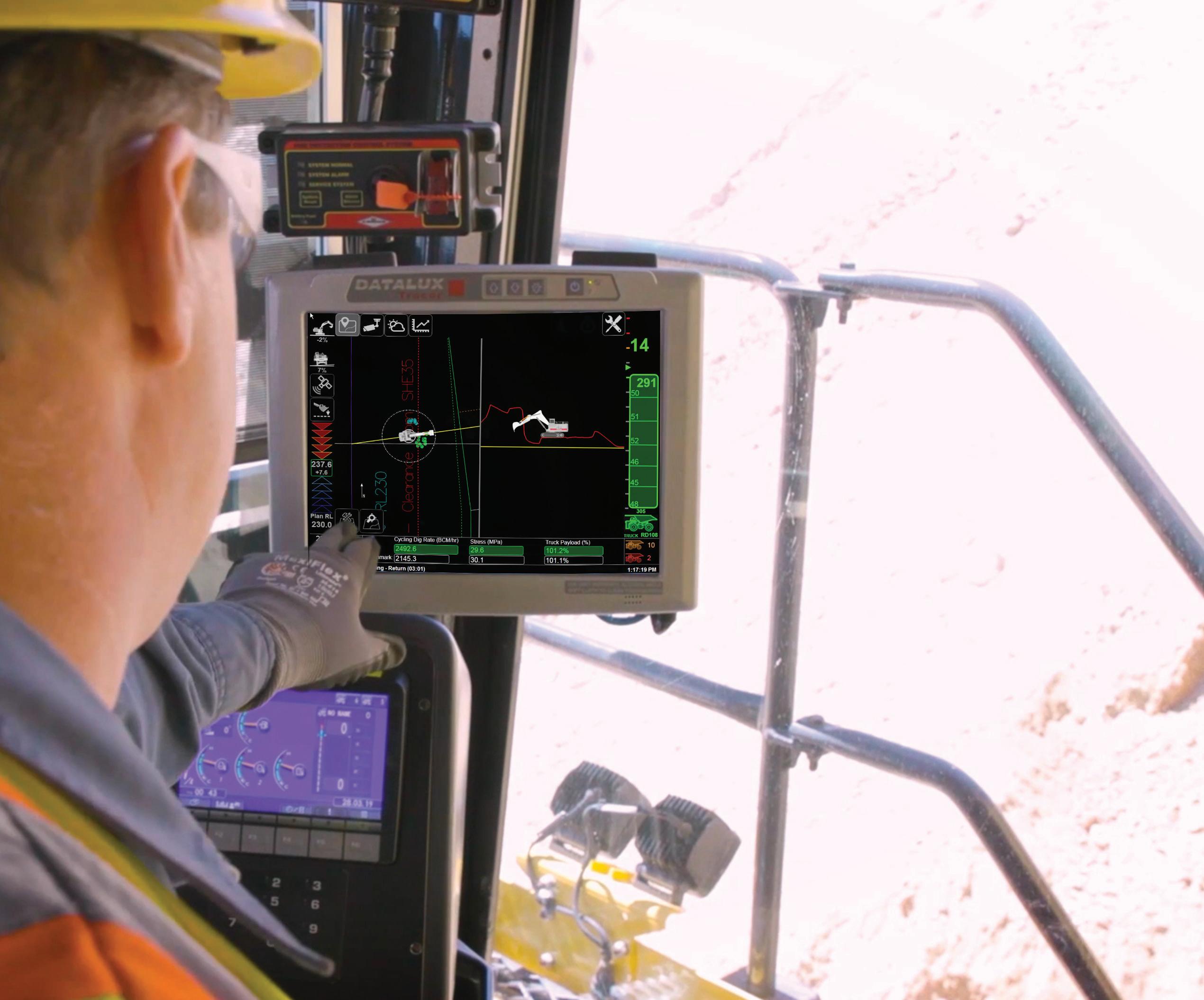 dual 1675 hp Tier 4 engines, big 38 m³ shovel size and the Argus Payload Monitoring System, the Komatsu PC7000-11 surface mining excavator is a rare combination of power and precision. Operators can efficiently dig up and load 240 – 290 trucks with intelligent payload measuring technology, visible from the Argus display.