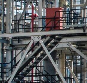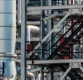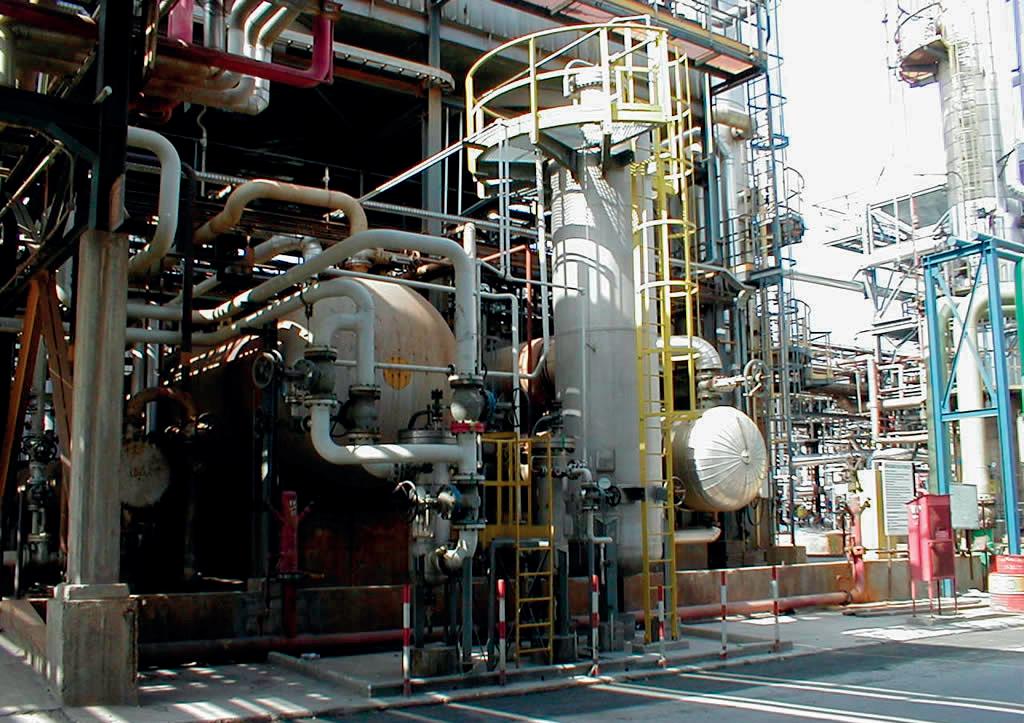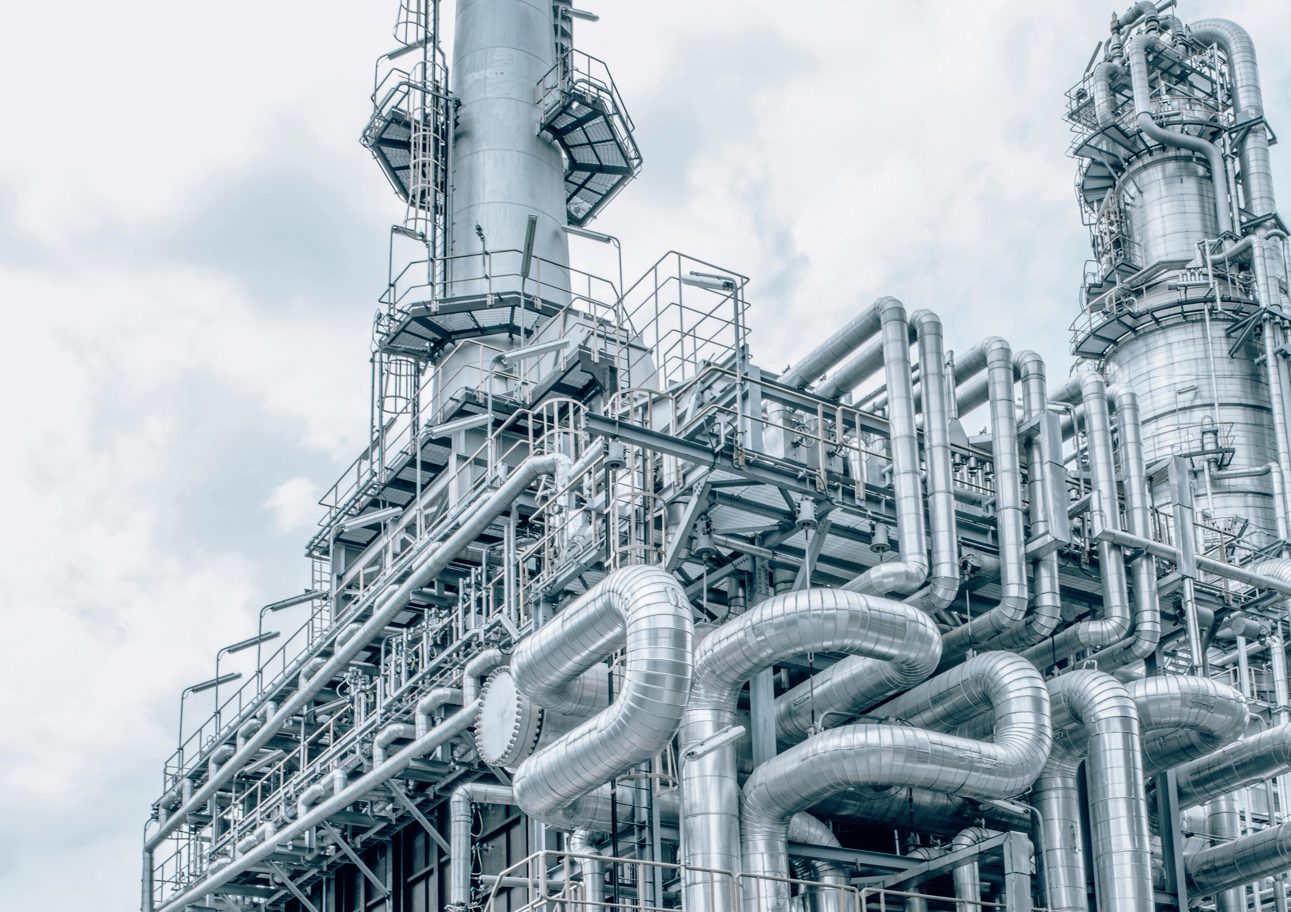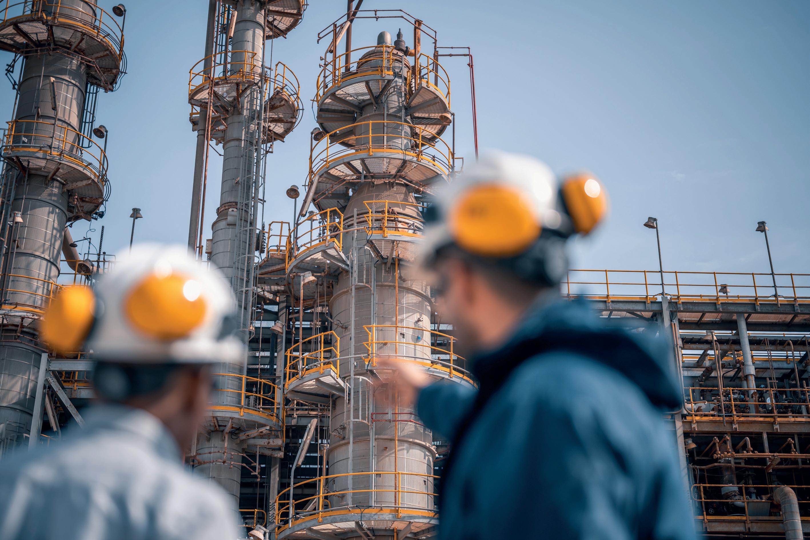 Figure 2. Workers at a refinery with pipes and machinery.