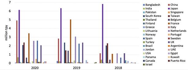 Figure 2. Russian LNG export by country of destination. Source: based on GIINGL data.