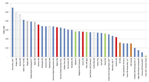 Figure 6. Carbon footprint of selected LNG plants. Source: IEA Environmental Integrity Project, Emission Increase Database, November 2019.