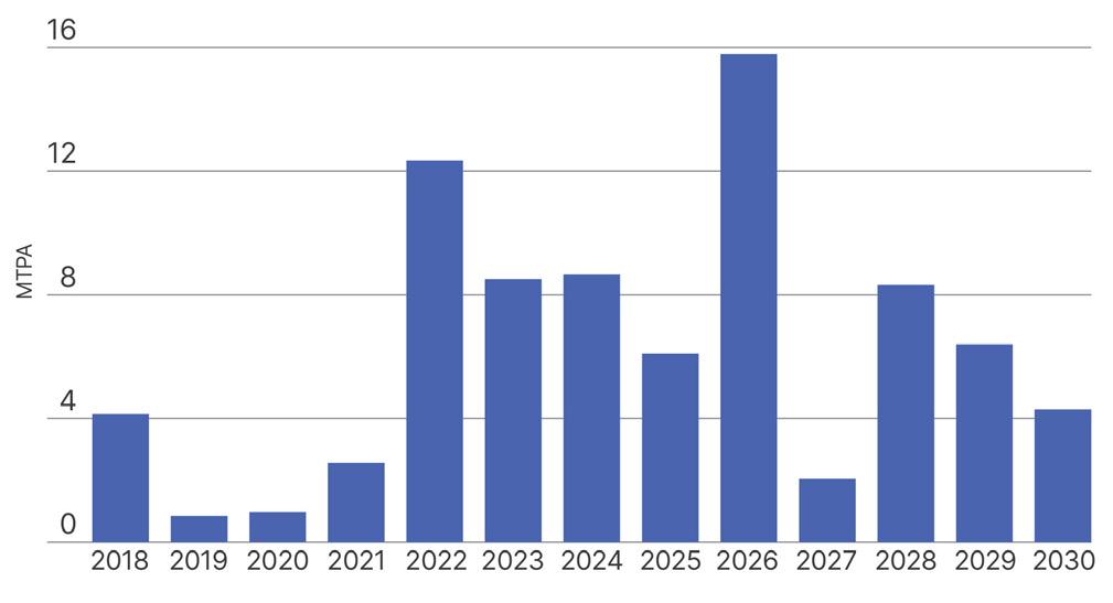 In 2021 and 2022, China signed a combined 44 million t of LNG contracts