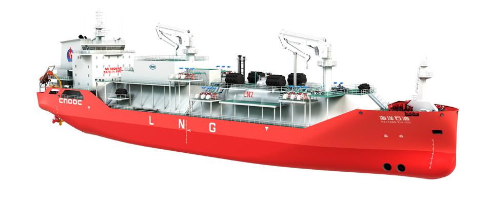 This LNG bunker vessel is poised to be the second largest in China, after the 30 000 m 3 LNG carrier Hai Yang Shi You 301, also owned by CNOOC, was converted from a gas carrier to a bunker vessel last year. TGE Marine supplied the cargo handling system, fuel gas system and