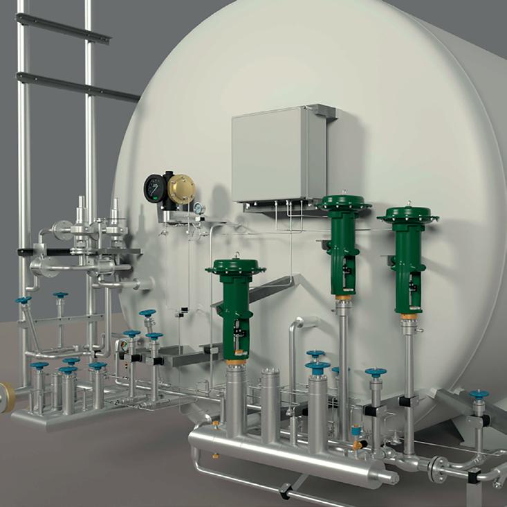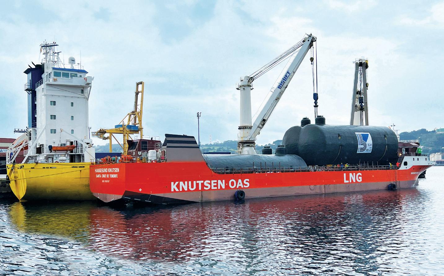 China has also recently seen some ground-breaking bunker vessel projects, to cater to the increase of LNG-fuelled vessels there. Nantong CIMC Sinopacific Offshore & Engineering Co., Ltd is building a 12 000 m 3 LNG bunker vessel for China National Offshore Oil Corporation (CNOOC). TGE Marine has been awarded the contract to design and supply the cargo handling and fuel gas system. The bunker vessel will supply its cargo to any LNG-fuelled vessel in Chinese waters and it will be equipped with two IMO Type C cylindrical tanks with a design pressure of 4.5 barg. An LNG sub-cooling system will also be fitted in order to condition the cargo to -163˚C.