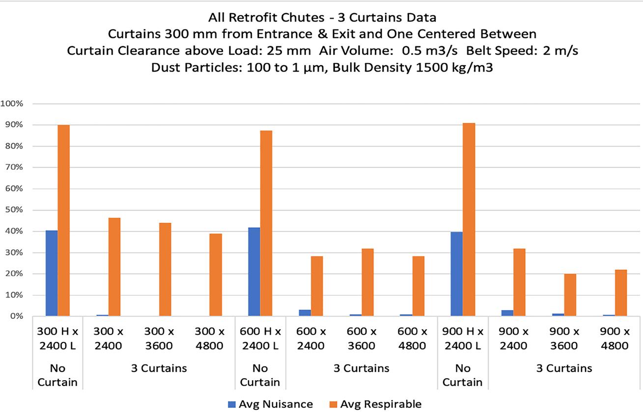 While some operational improvement is seen with increased skirtboard height and length, it is doubtful that it can be economically justified merely on the reduction of respirable dust alone. The true return on investment for new and retrofit conveyor transfer designs in fertilizer production is realised by reducing cleaning labour, increasing equipment life and eliminating dust emissions. If the improvements reduce the TWA of respirable dust emissions to the point where engineering or administrative controls could be less stringent, then a financial case could also be made based on improvements in labour productivity. 2