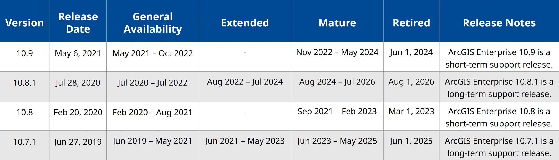 ArcGIS 10.8.2, the final ArcMap release, will be supported under its product lifecycle until 1 March 2026. ArcGIS Pro 3.x is fully compatible with Enterprise 10.9.1, which is designated as a longterm support release. Compatibility with ArcGIS Pro versions and APR models will be maintained to facilitate a seamless integration.
